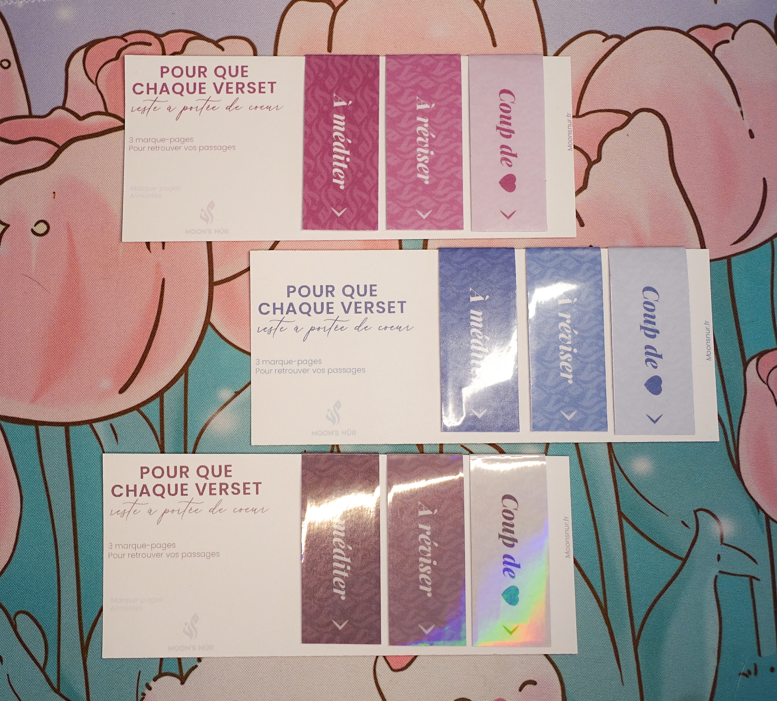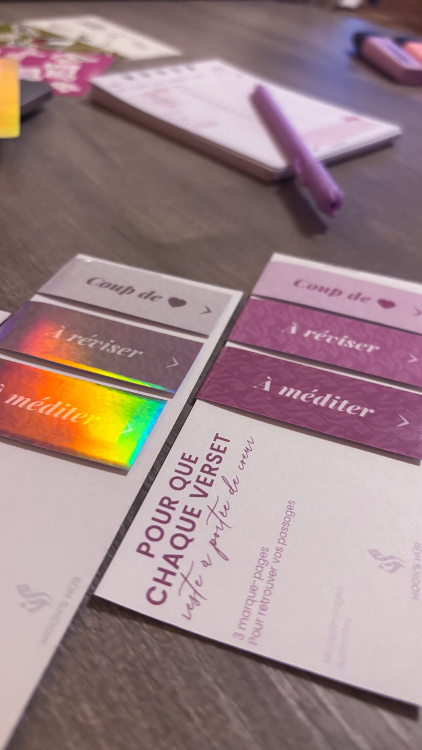 Un lot de 3 marque-pages aimantés, pratiques et élégants, pensés pour accompagner tes lectures spirituelles avec intention.